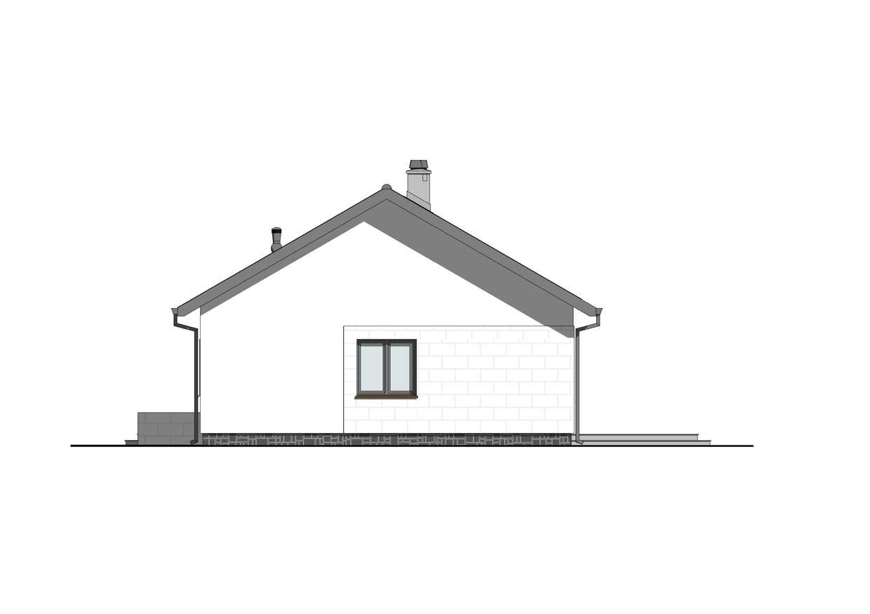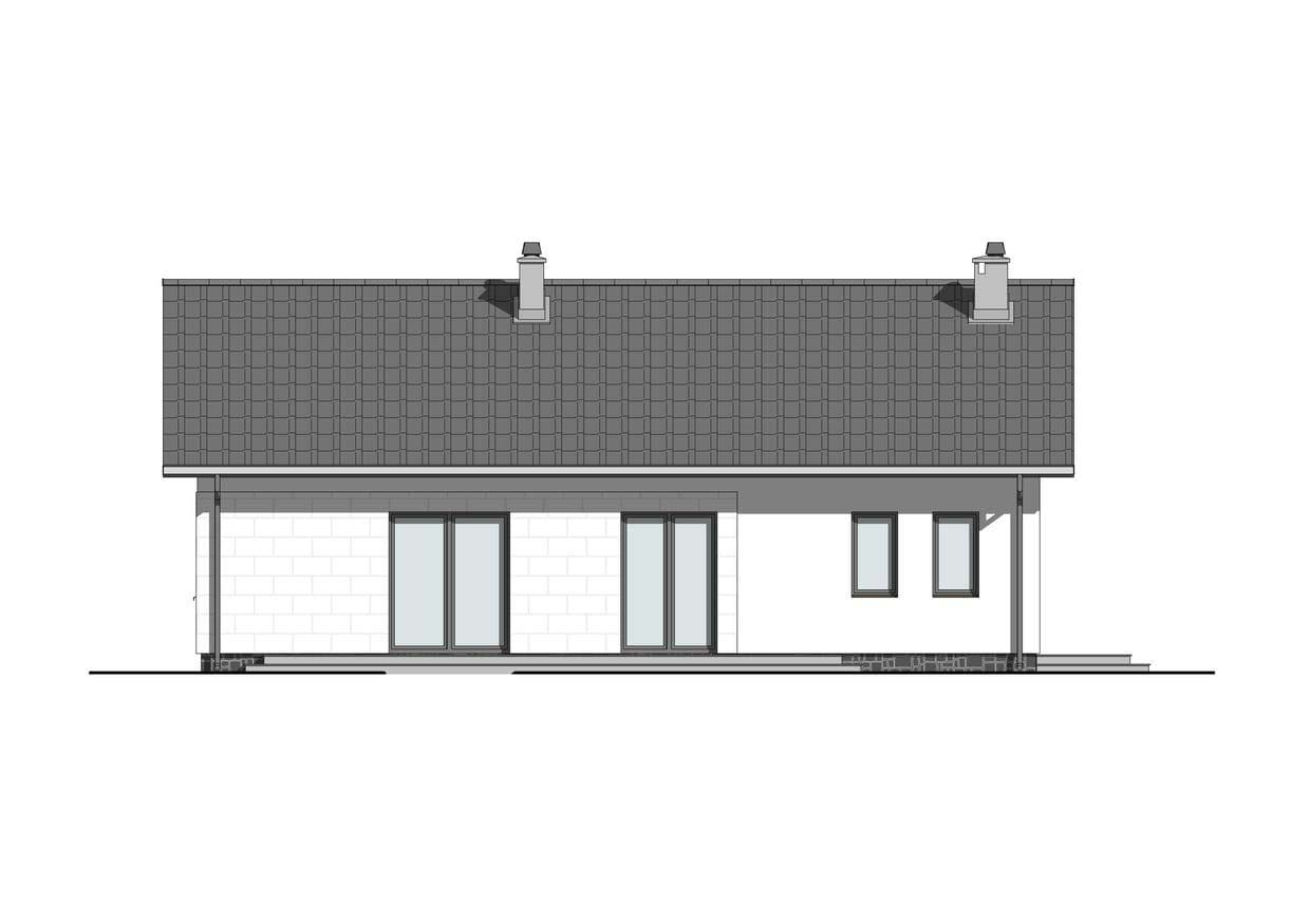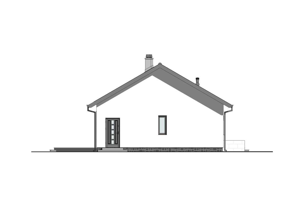 Dom KP-101 jest kolejną wersją projektu KP-100. Jest to budynek parterowy, ale z dachem dwuspadowym przeznaczonym do zabudowy wolnostojącej. Budynek o powierzchni użytkowej 88,71 m2 posiada trzy sypialnie, które doskonale sprawdzą się w przypadku 4 osobowej rodziny. Przestronna część dzienna z jadalnią i otwartą kuchnią, będzie idealnym miejscem spotkań rodzinnych i ze znajomymi. Przy kuchni zaprojektowano spiżarkę, która ułatwi utrzymanie porządku. Usytuowany w salonie kominek sprawi, iż wnętrze stanie się bardziej przytulne. Dzięki temu, że dom jest parterowy komunikacja między pomieszczeniami jest bardzo przyjemna. W domu znajduje się jedna komfortowa łazienka. Ponad to przewidziano małą pralnię oraz kotłownię z dodatkowym wejściem od zewnątrz. Ciągłość pomiędzy wnętrzem domu a ogrodem łączy przestronny taras.