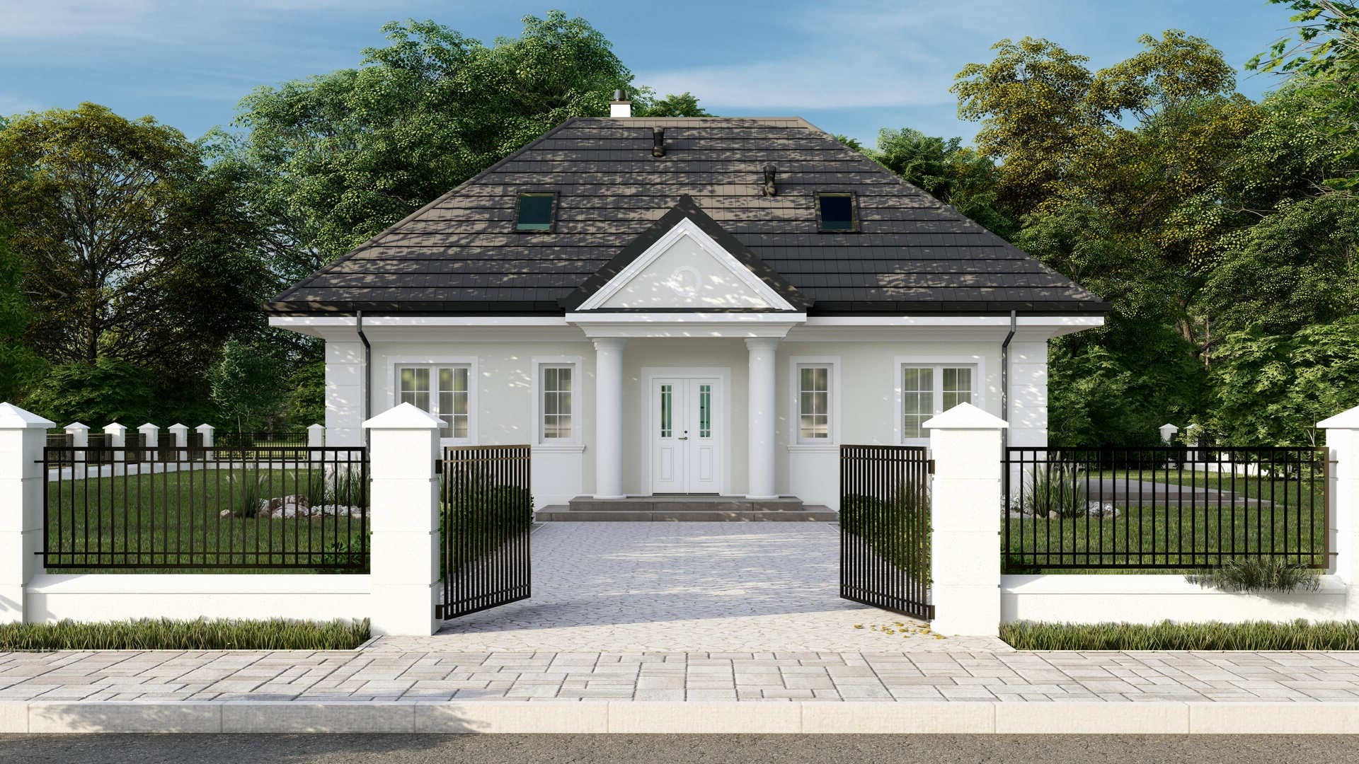 Mały dom w stylu dworkowym to prawdziwa perła architektury klasycznej. Ten piękny budynek oferuje wszystko, czego potrzebujesz, by poczuć się jak w domu. W jego wnętrzu znajdują się 4 sypialnie, zapewniające prywatność i komfort dla wszystkich domowników. Do dwóch sypialni na poddaszu przynależy przestronna garderoba, w której można przechowywać ubrania i akcesoria.
