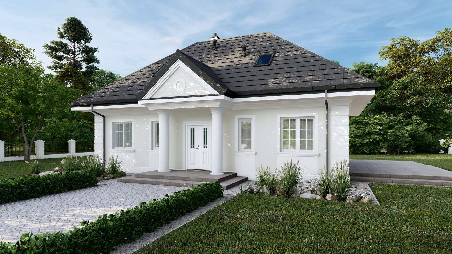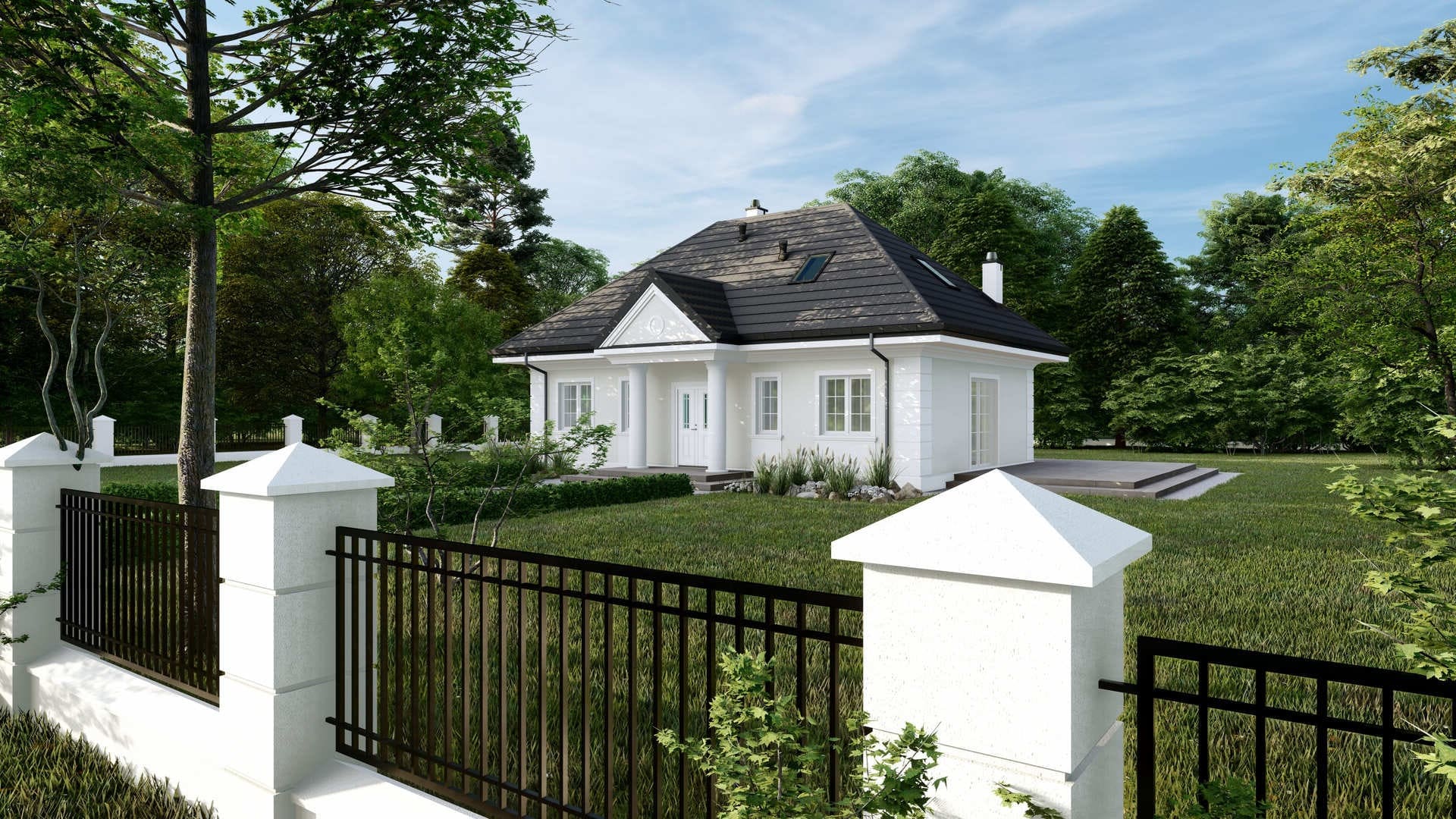 Dom jest wykończony z dbałością o szczegóły, a jego klasyczny styl dodaje mu wyjątkowego charakteru. Dworkowy styl architektury został zachowany we wszystkich elementach, od wykończenia elewacji po stylowe okna i drzwi. Ten mały dom to prawdziwe dzieło sztuki i jest idealny dla rodziny, która ceni sobie tradycję i komfort.